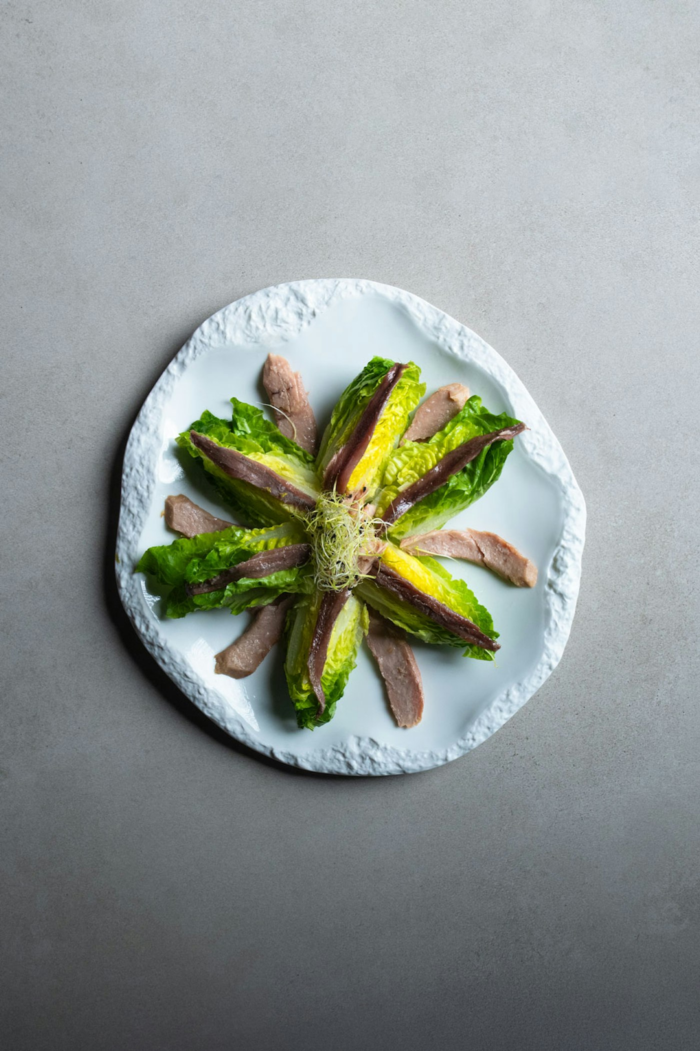 Baby Romaine Lettuce with Tuna Belly and Anchovy